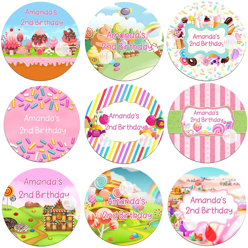 Candy Ice Cream Sweet Party Birthday Decor Labels Custom Baby Shower Party Personalise Any Text Stickers Candy Land World