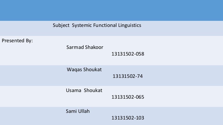 Grammatical functions in the clause | Englicious.org The first line of the table shows the form labels and the second line shows the function labels. This simple pattern is often extended by one or more phrases which specify a circumstance of the situation - such as when, where or how it happens. These phrases function as Adverbials: It rolled beautifully . [S1A-057 #316] ELT Concourse: an introduction to functional grammar Functional grammar has emerged initially from the work of Halliday in the 1990s and the key distinctions between what are known as Field, Tenor and Mode. ... problems with using a traditional grammar in classrooms is the tendency it has to confuse function with class labels. For example, if we characterise the normal word ordering in English as ... What Is Functional Grammar? - UKEssays.com Functional grammar looks at language as consisting of units of meanings rather than chunks of forms. These units of meanings are represented in various oral and written texts. In keeping with the idea, functional grammar is interested to analyze language at the text level rather than sentences.