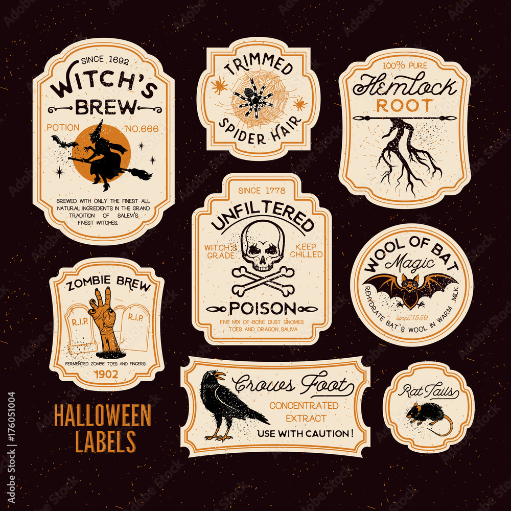 Perkoop 12 Pieces Halloween Wine Bottle Labels Halloween Beer Bottle Labels Sticker Waterproof Wine Bottle Label Stickers Vintage Bottle Label ...